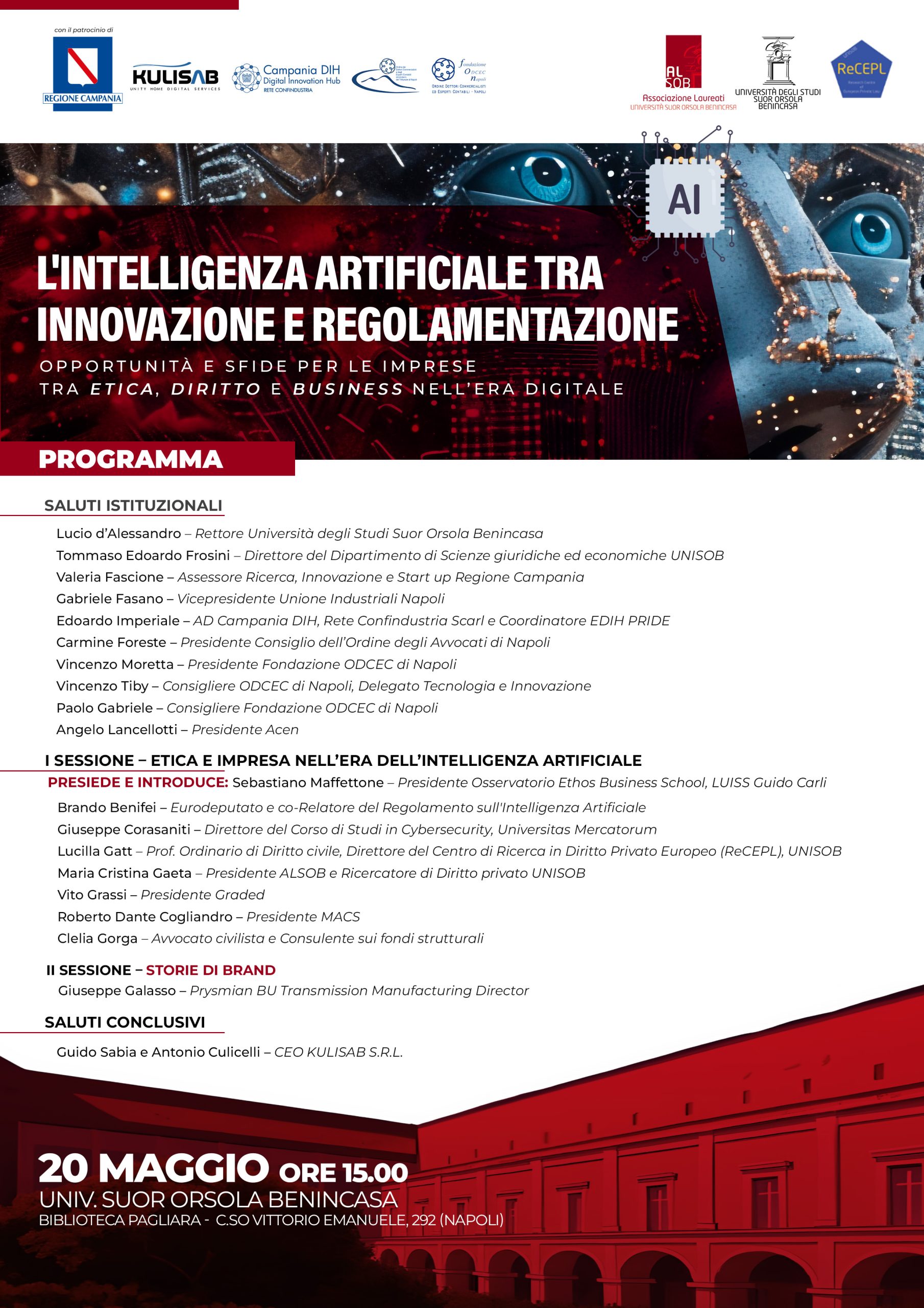 Convegno: "L'Intelligenza Artificiala tra Innovazione e Regolamentazione” [20/05/25 Presso La Biblioteca Pagliara – UNISOB]